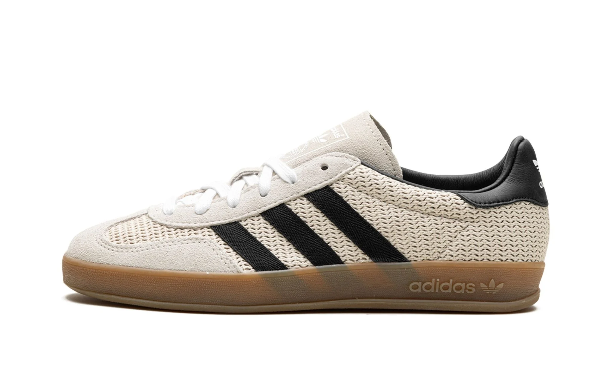 The Adidas Gazelle Indoor Aluminum Core Black combines an aluminum gray tone with black details, providing a retro and modern style. Perfect for those looking for a versatile and classic look.